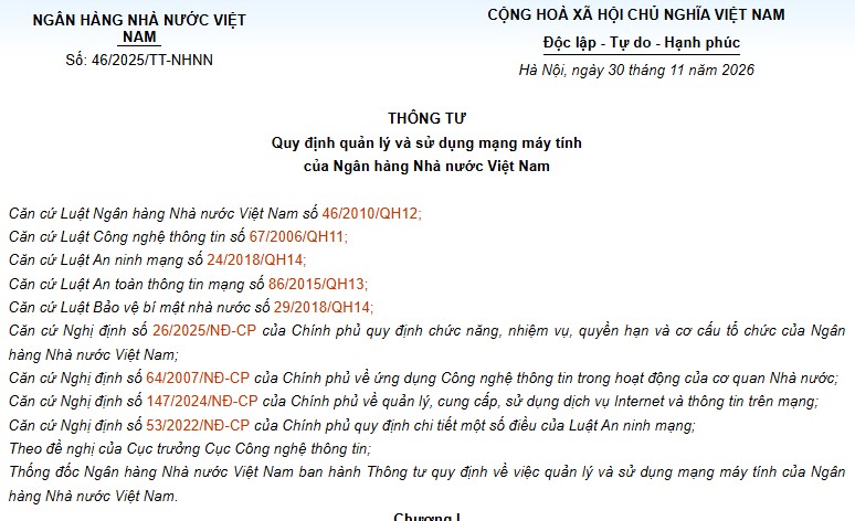 NGÂN HÀNG NHÀ NƯỚC VIỆT NAM Số: 46/2025/TT-NHNN CỘNG HOÀ XÃ HỘI CHỦ NGHĨA VIỆT NAM Độc lập – Tự do – Hạnh phúc Hà Nội, ngày 30…